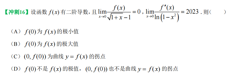 【解析】B —— 不取拐点 二阶导不知道是否连续,不能推出 该点二阶导为0