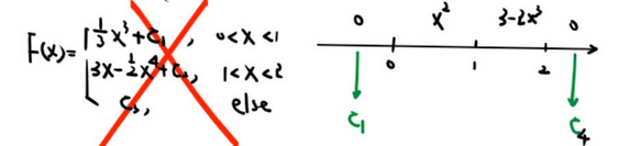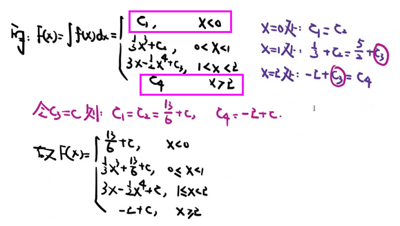 【分段函数不定积分 注意连续调整常数 注意 f 为0 处 分段】