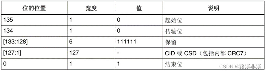 SD卡总共有6类响应(R1、R1b、R2、R3、R6、R7),我们这里以R1为例简单介绍一下。R1(普通响应命令)响应属于短响应,其长度为48位,如下表所示: