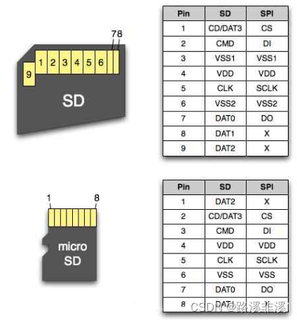 以SD卡和TF卡为例,查看它们的pin脚定义