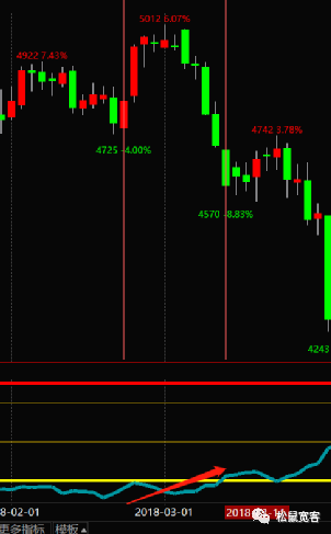下面我们来观察亏损周期中的第二段—2018.6.1-2018.7.9。在该时间段,出现了热卷低波动第一时间周期第二个回撤较大时间节点,另外我们还观察到一个细节,那就是2018年5月2日—2018年5月23日,该节点同样属于绩效大幅度震荡微往下态势,而同样波动率也是处在收敛过程中。如下图所示: