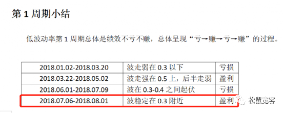 低波动率第1周期总体是绩效不亏不赚,总体呈现“亏→赚→亏→赚”的过程。