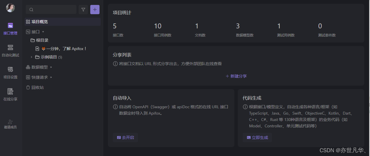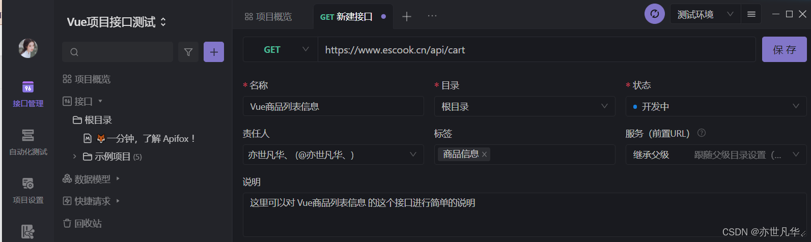 为了能让各个产品项目负责人落地更加便捷,Apifox应运而生实现了API设计开发测试一体化协作。俗称:Apifox=Postman+Swagger+Jmeter+Mock工具集。简而言之:开发人员在Apifox里定接口、前端直接根据Apifox去Mock数据、后端开发直接在Apifox进行调试、测试人员直接在Apifox的接口文档里面写用例、接下来就是前后端进行联调。
