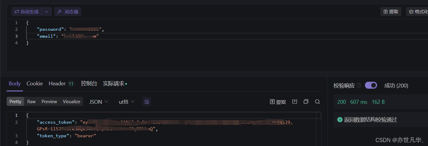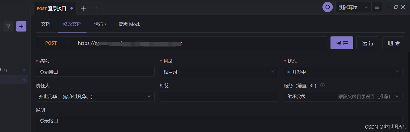我们在进行登录接口的测试时,可以通过后置操作获取其相应的token值,其操作和上文一样,编写相应的接口文档