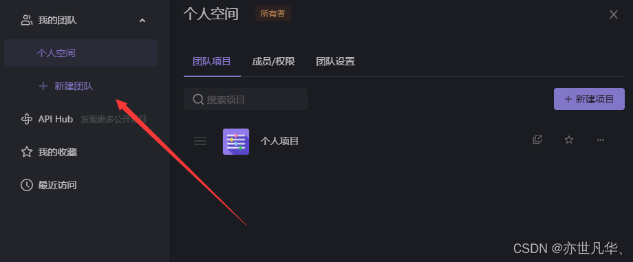 点击新建团队,创建新项目。
