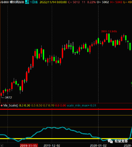 上图中蓝色线为ATR归一化时序数据,黄色为0.3,红色为0.8。我们通过定性观察可以看到,疫情3年黑色金属指数波动率最低为0.3,其余大部分都在0.5以上,甚至阶段性出现1的情况(归一化后的波动率位于0-1之间)。