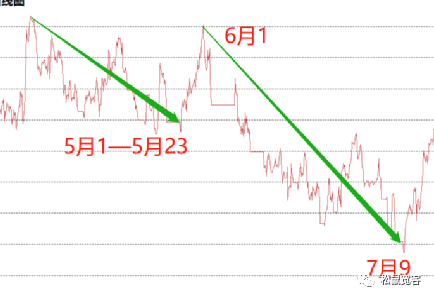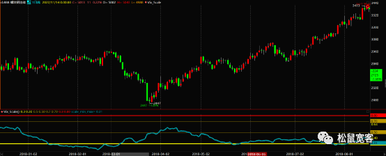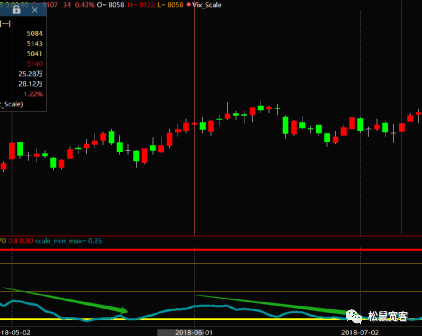 下面我们来观察亏损周期中的第二段—2018.6.1-2018.7.9。在该时间段,出现了热卷低波动第一时间周期第二个回撤较大时间节点,另外我们还观察到一个细节,那就是2018年5月2日—2018年5月23日,该节点同样属于绩效大幅度震荡微往下态势,而同样波动率也是处在收敛过程中。如下图所示: