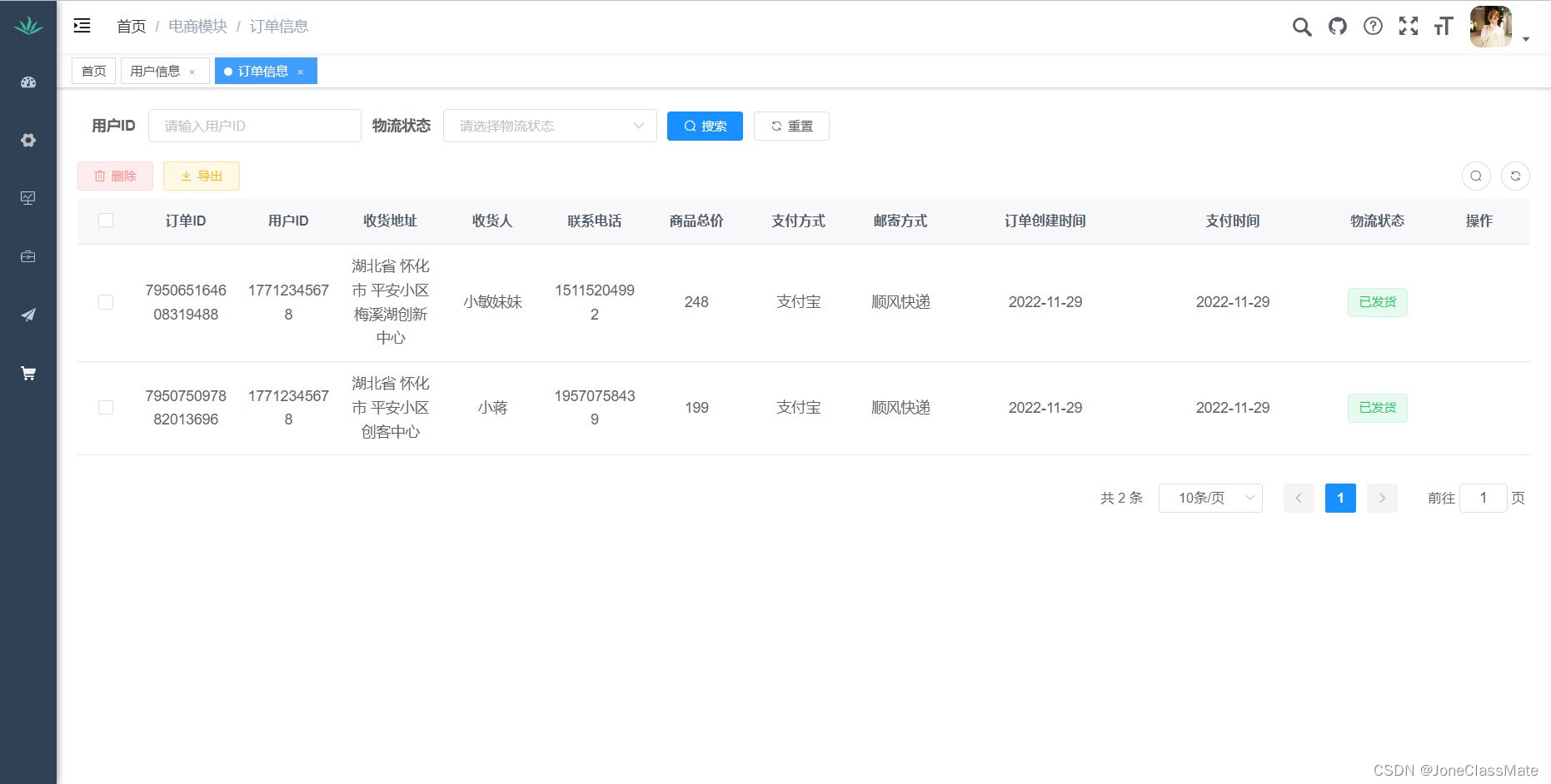 2.3 订单管理(发货)