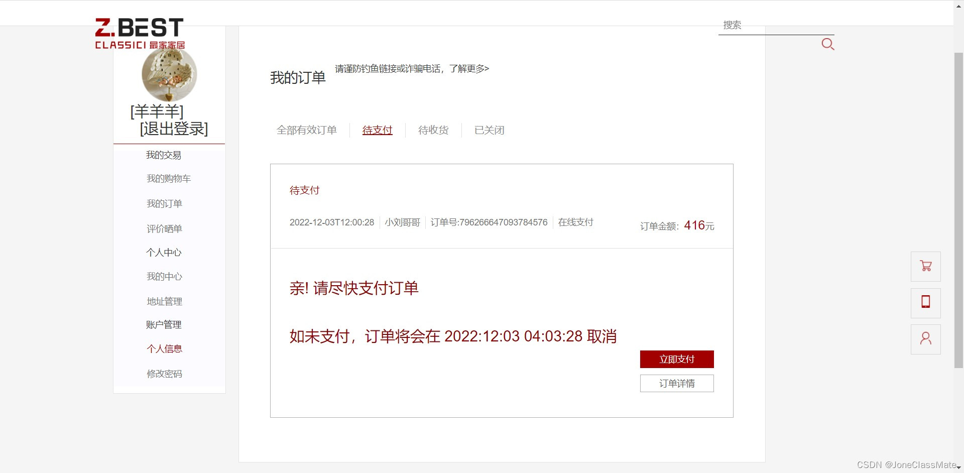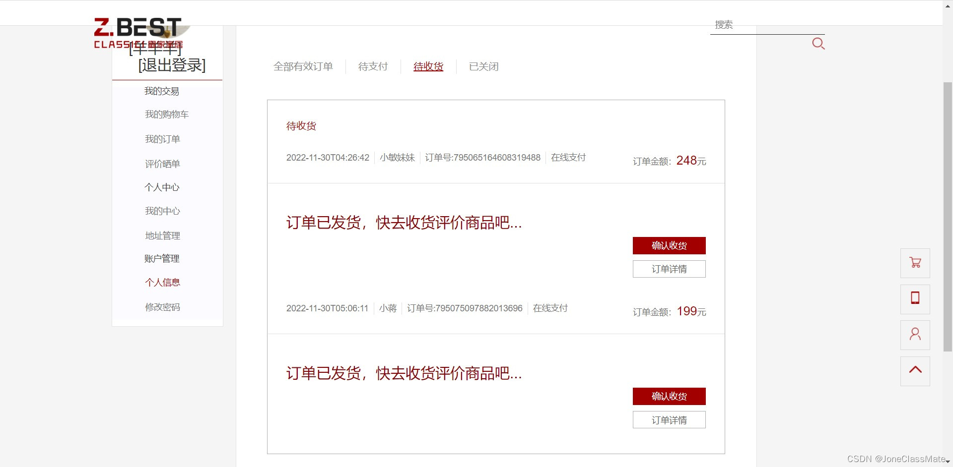 2.2 我的订单(全部有效订单,待支付,待收货,已关闭)