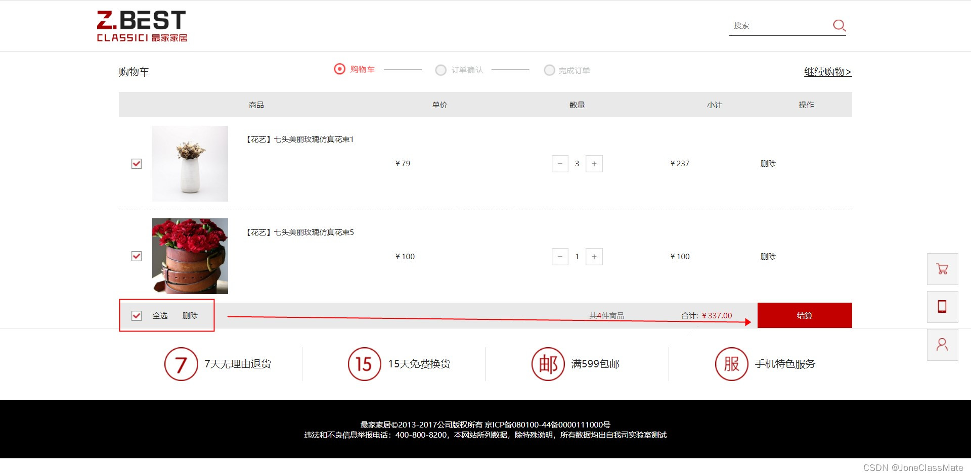 1.7 在商品购物车中选中商品购买