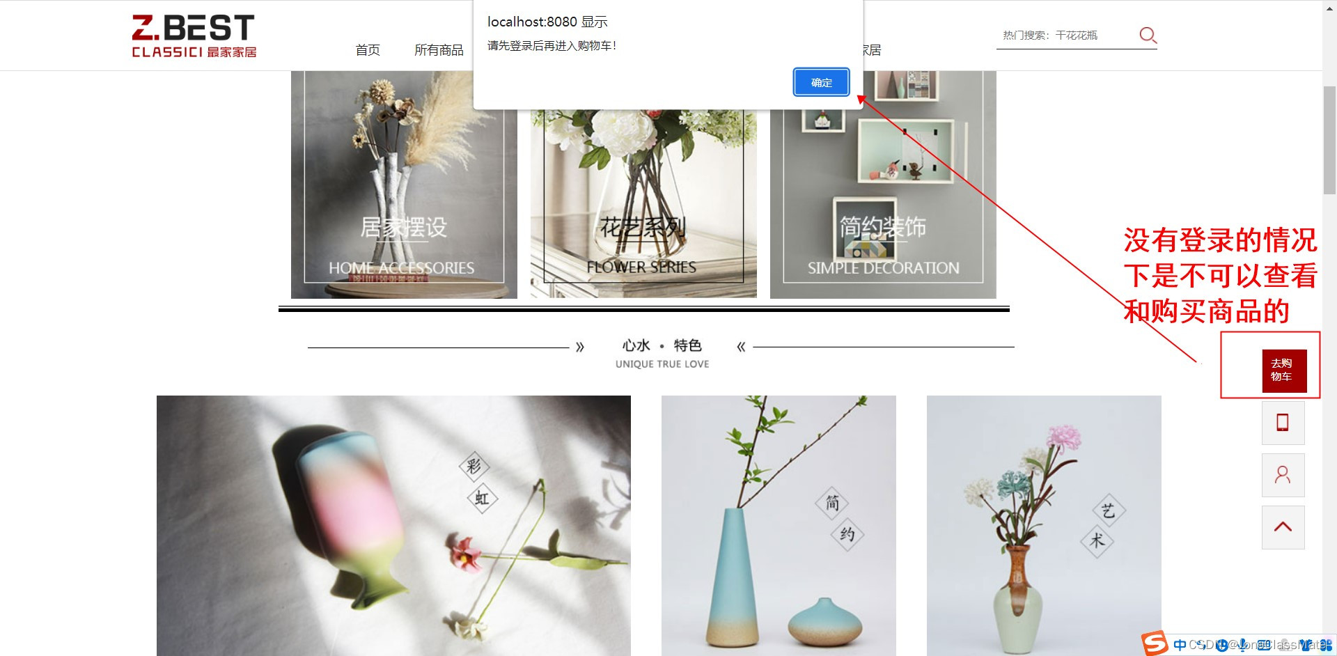 1.1 主页(未登录时可以查看商品但是不可以购买)