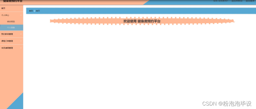 会员登录进入健身房预约平台可以对首页、个人中心、预约教练管理、课程订单管理、会员请假管理等功能进行相应操作,如图5-28所示。