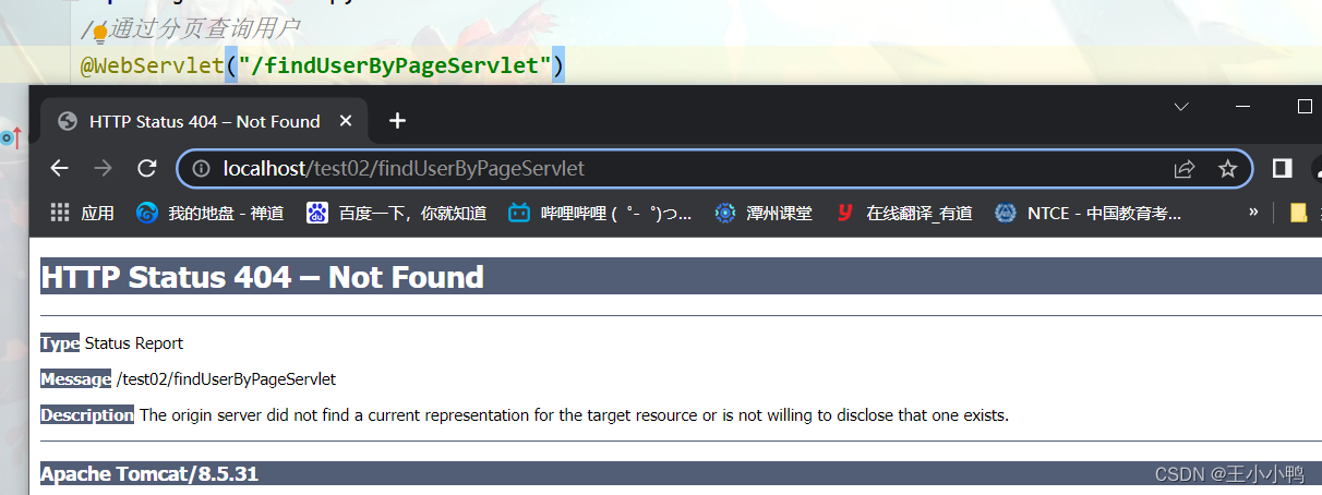 原因是重新建了一个findUserServlet,需要重新启动服务器,启动即可成功访问