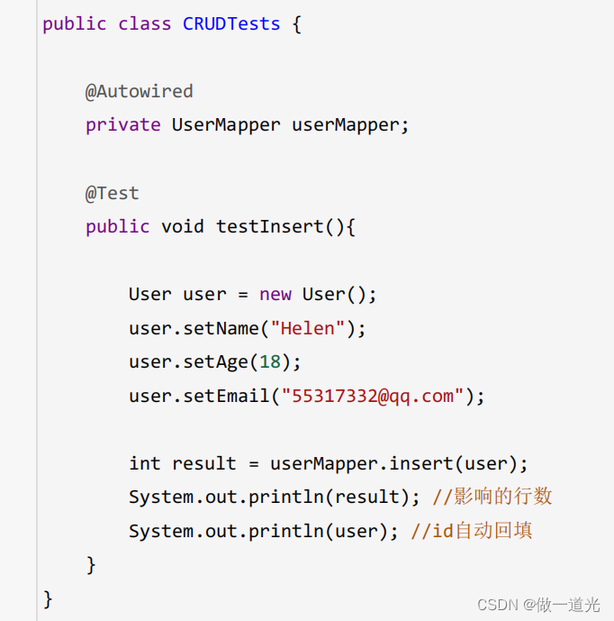 注意: update时生成的sql自动是动态sql:UPDATE user SET age=? WHERE id=?