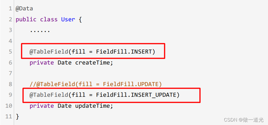 我们可以使用MyBatis Plus的自动填充功能,完成这些字段的赋值工作: