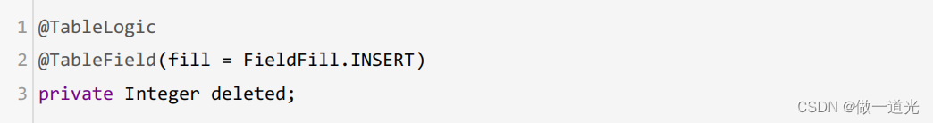 并加上 @TableLogic 注解 和 @TableField(fill = FieldFill.INSERT) 注解