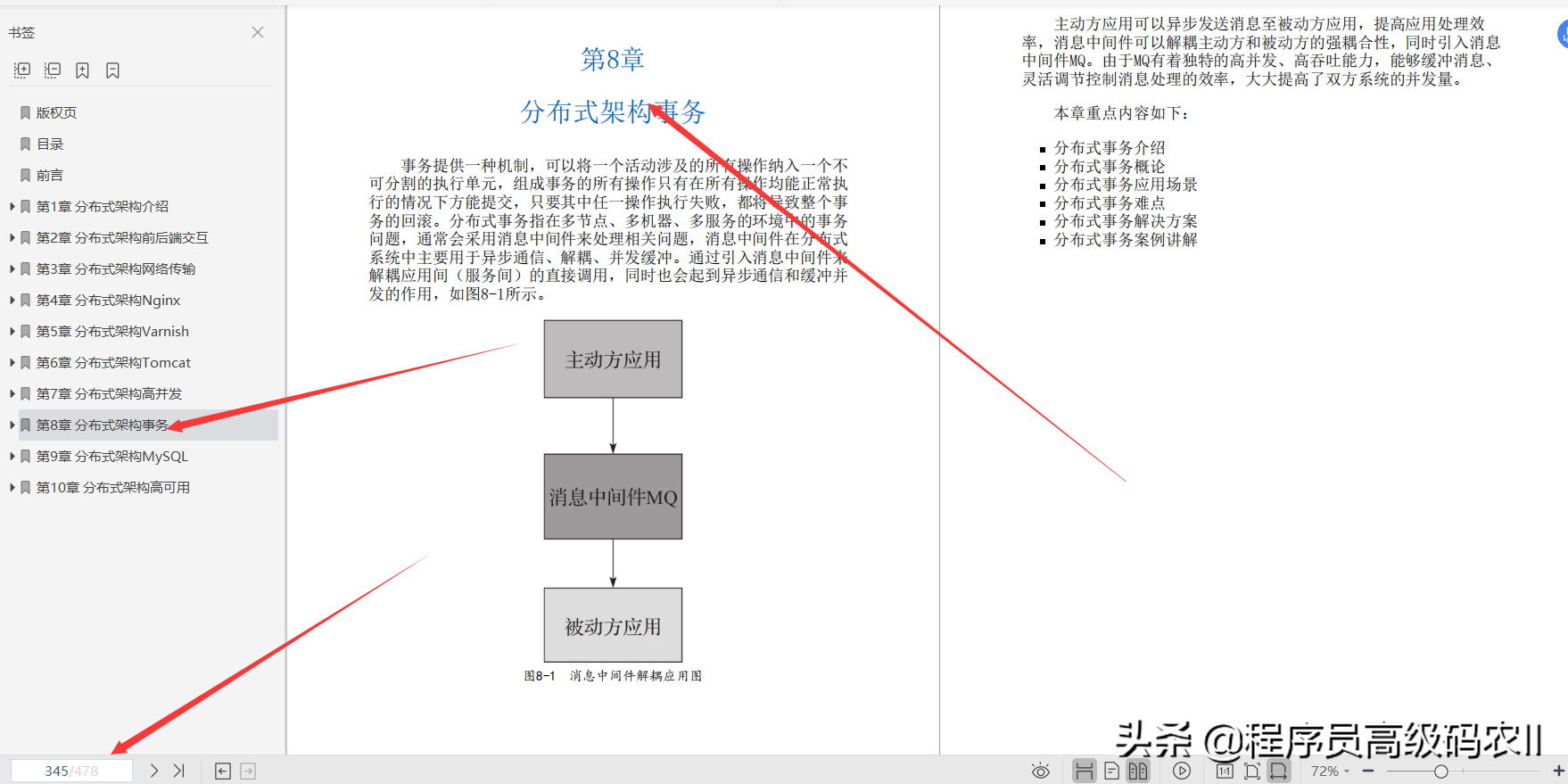 **第8章分布式架构事务;**主要介绍普通事务与分布式事务的差异性,以及对分布式事务的多种处理方式,本章会通过多个案例并结合代码进行分析。