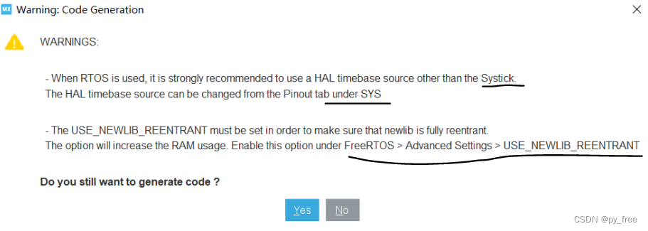 这是关于freertos暴露给用户的API接口并不是原生的freertos接口,是经过cmsis-rtos进行一次包装之后的,在使用timebase源是有所冲突,编译器会建议你把timebase源切换到非systick。这是因为freertos的调度时钟是强制性使用systick的并且systick的中断优先级被设置为最低。