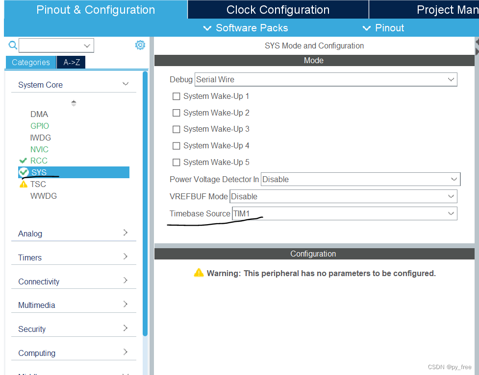而hal 库需要使用到的tick计数源,HAL标准库有很多有超时功能的函数接口都用到这个hal timebase。所以编辑器在生成代码时候就强烈建议hal timebase和freertos 使用的systick不要共用。systick已经被强制为最低优先级,hal timebase用的话就可能产生计数不准的情况。