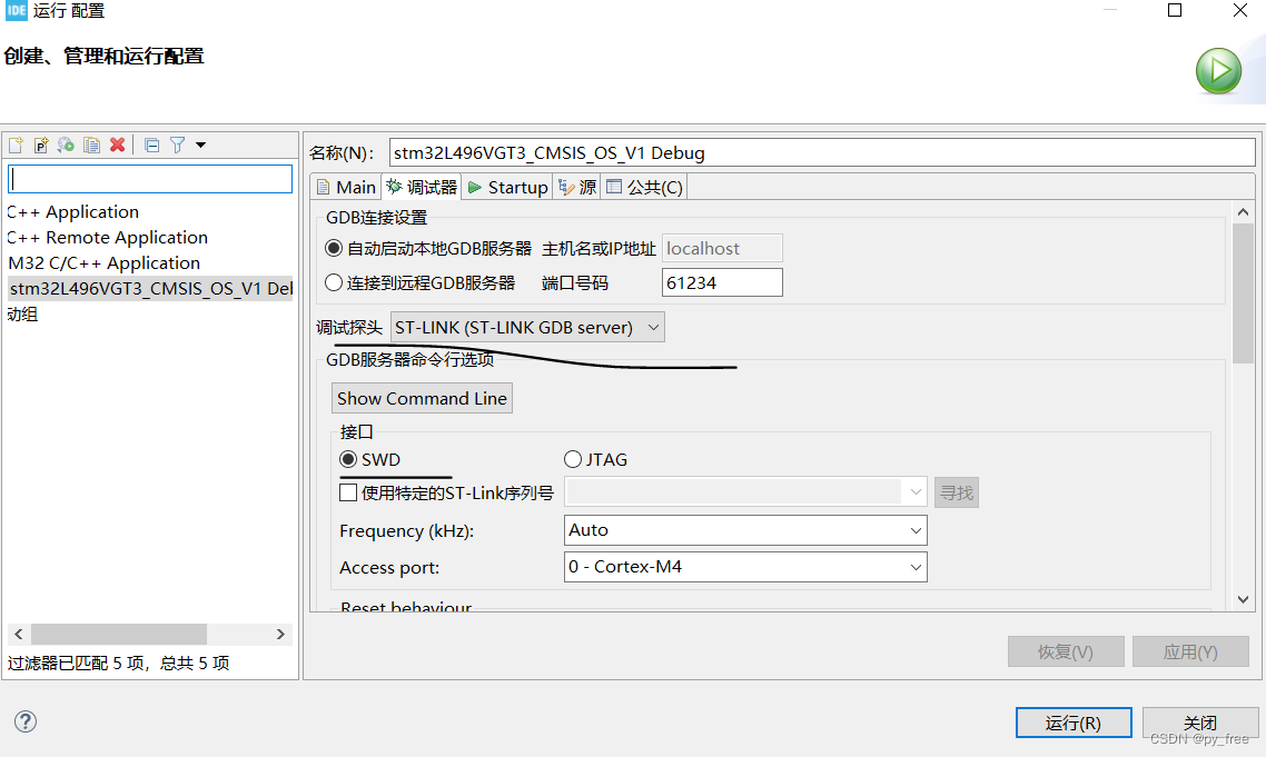 【2】配置程序运行按钮下来列表,点击“运行配置”,新建一个配置选项,默认配置即可,选择串口支持格式。或者采用其他烧写工具实现。