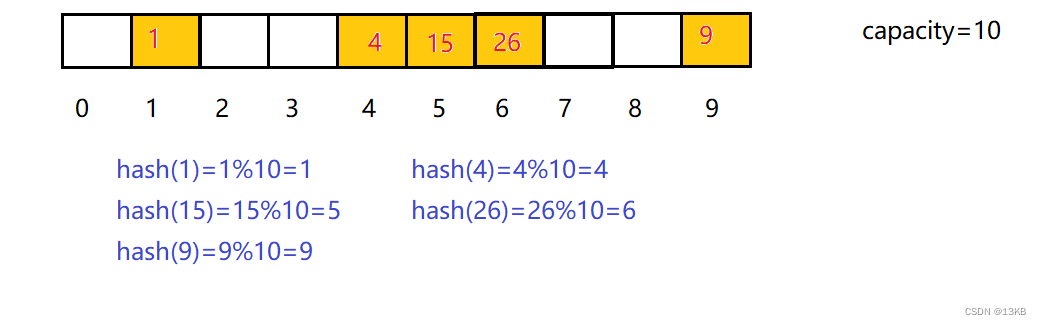 把数据映射到有限的空间里面。设散列表中允许的地址数为m,取一个不大于m,但最接近或者等于m的质数p作为除数,按照哈希函数:Hash(key) = key% p(p<=m),将key转换成哈希地址。