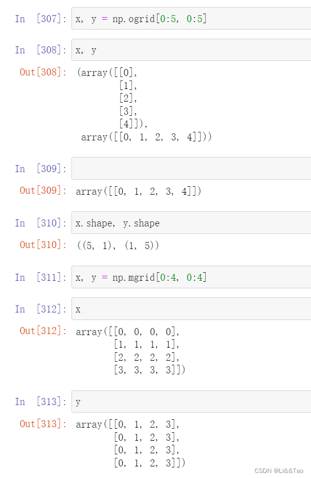 利用np.ogrid和np.mgrid