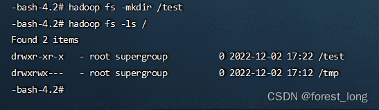 hadoop fs -mkdir /test