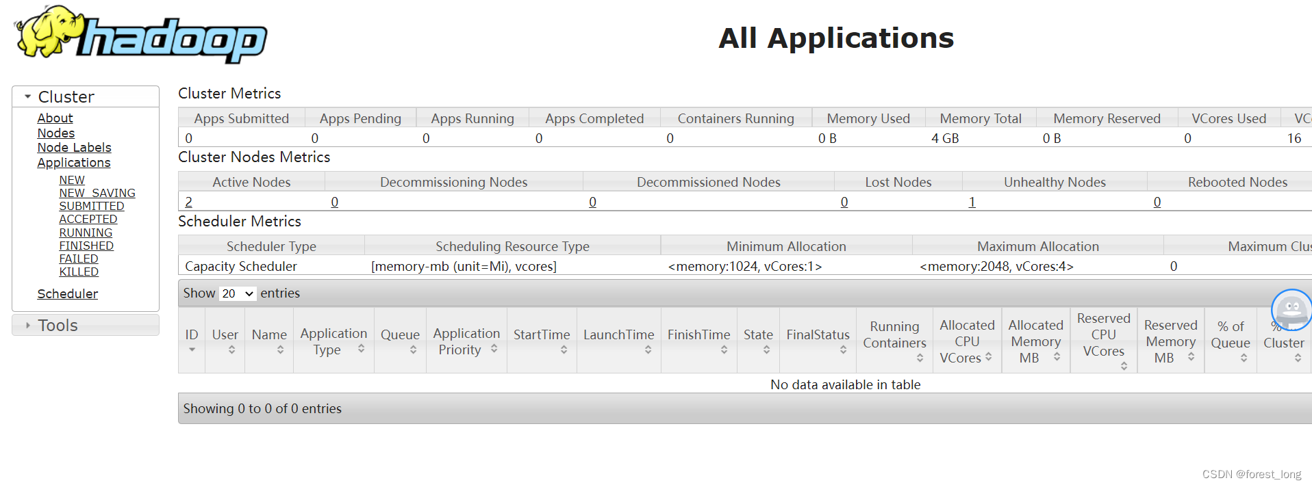 http://master:8088/cluster