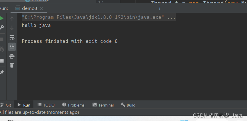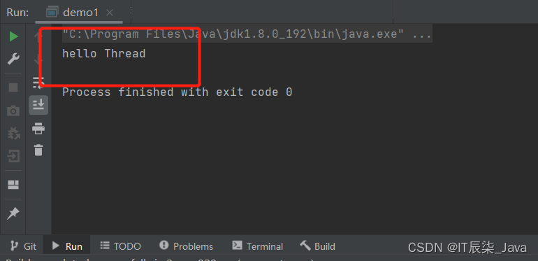 public class demo1 {public static void main(String[] args) {Thread t = new MyThread();t.start();}