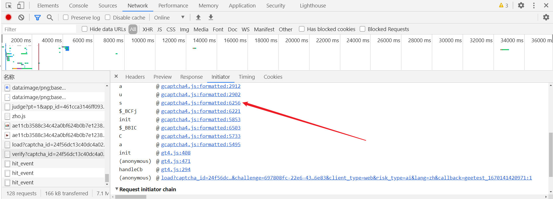 w 参数的加密位置还是特征值 "\u0077",也可以跟栈跟到,Initiator 堆栈中跟到 s 位置: