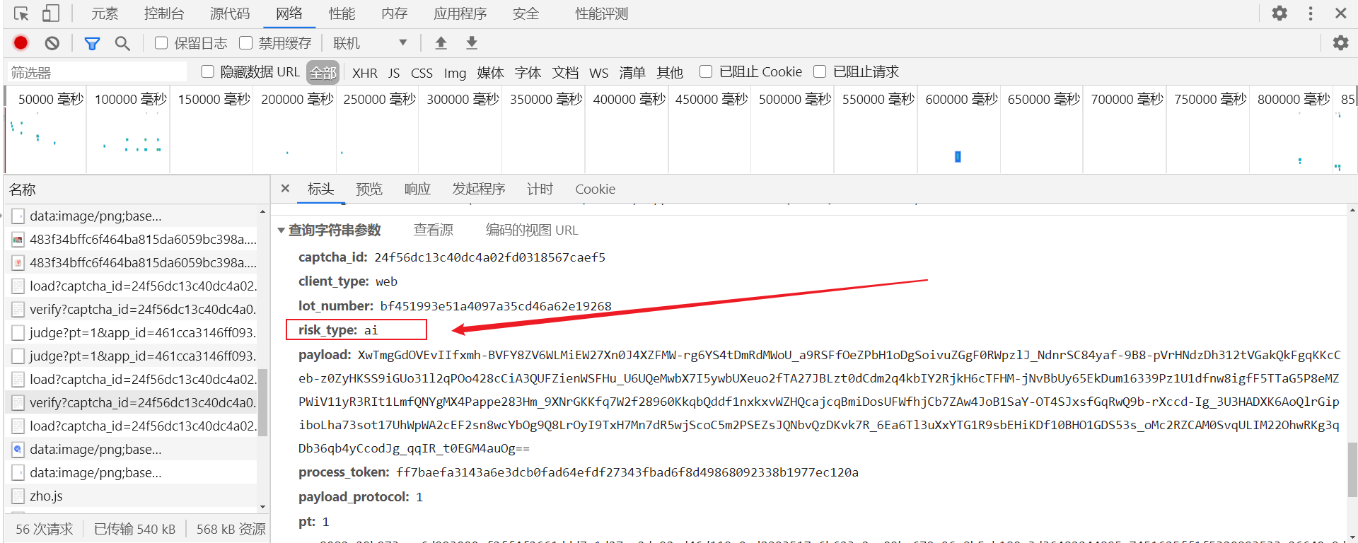 进入网页后,F12 打开开发者人员工具,进行抓包,抓包到的 load 文件跟四代都没什区别,处理方式一样,verify 请求中的 risk_type 为 ai,滑块验证码为 slide,其他的都一样: