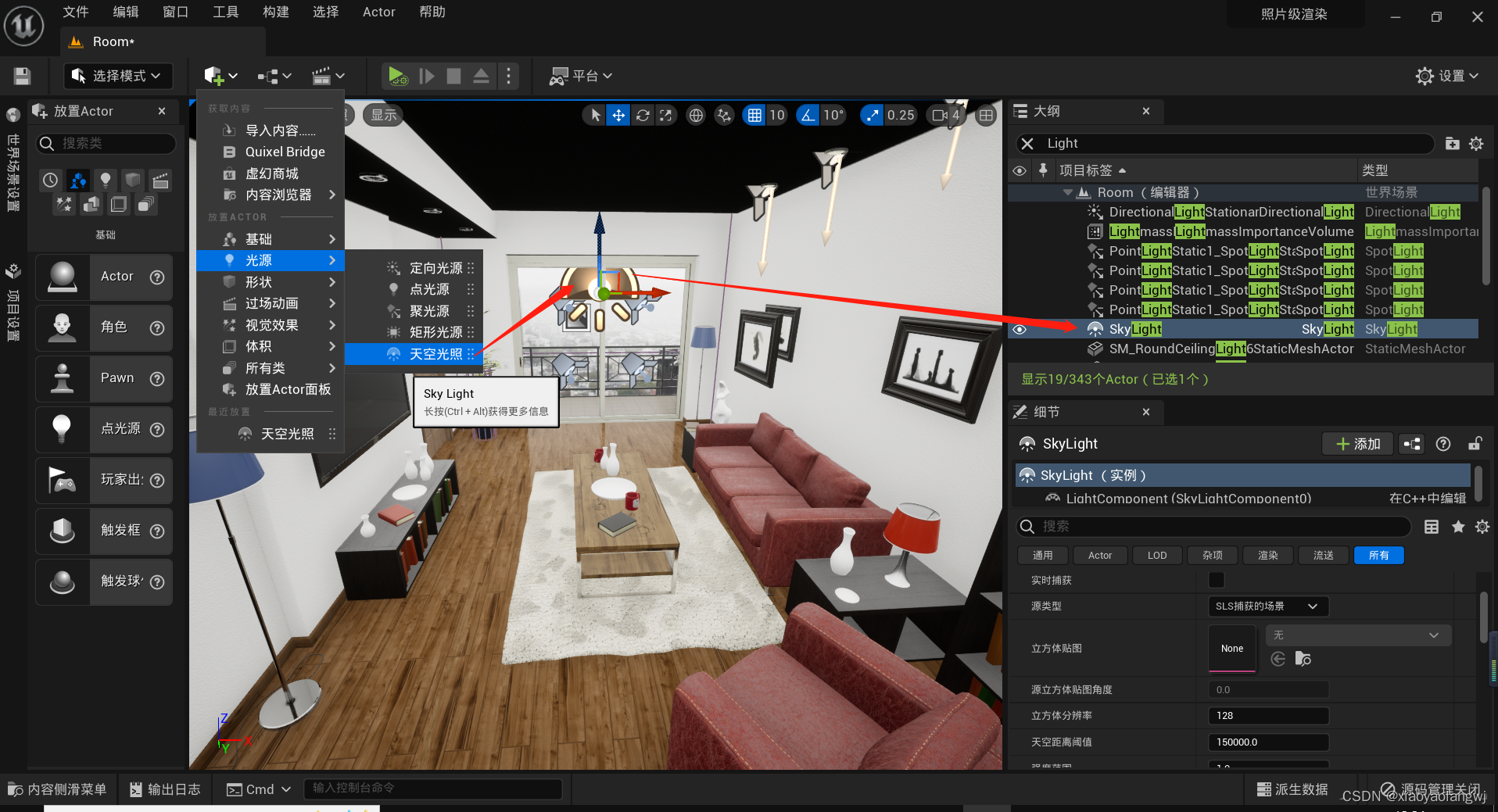 我们把最后一个光源太阳光也关闭了,现在查看SkyLighting影响效果。