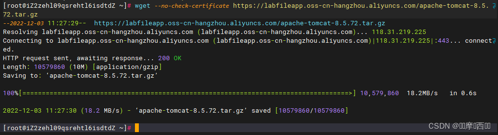 wget --no-check-certificate https://labfileapp.oss-cn-hangzhou.aliyuncs.com/apache-tomcat-8.5.72.tar.gz