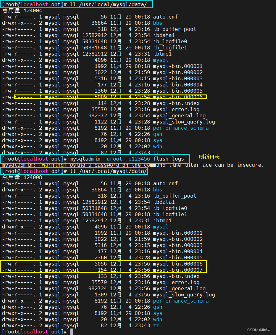 #二进制日志开启后,重启mysql 会在目录中查看到二进制日志