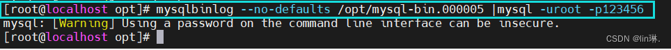 mysqlbinlog --no-defaults --base64-output=decode-rows -v /opt/mysql-bin.000002 > /opt/mysql-bin.000002