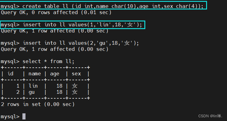 在全量备份与恢复实验中,假设现有qsh库,qsh库中有一个ll表,需要注意的一点为: