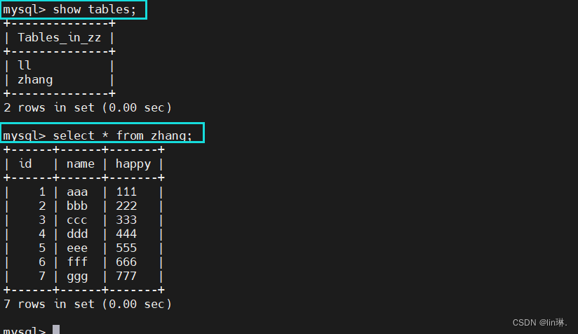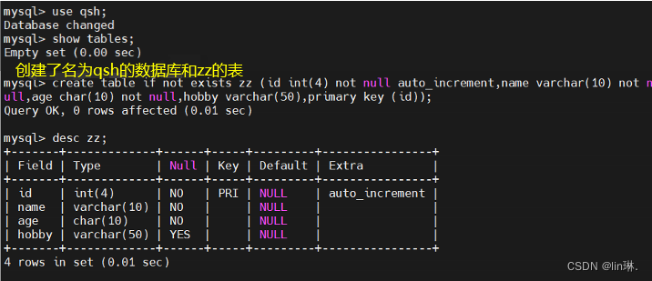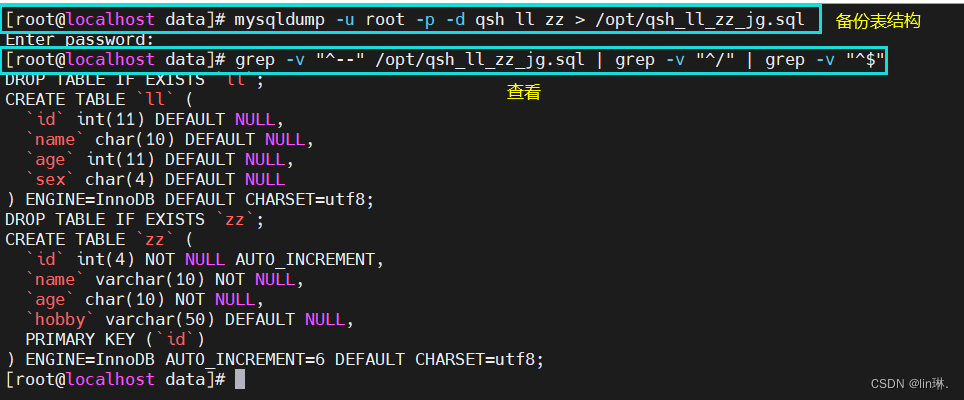 ② 当备份时不加 --databases,表示针对qsh库下的所有表