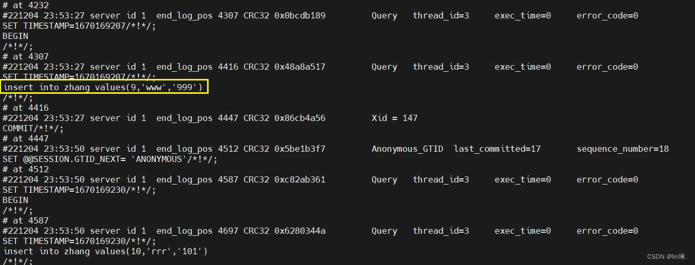 一般的语句使用statement,函数使用ROW方式存储。systemctl restart mysqld 查看二进制日志文件的内容