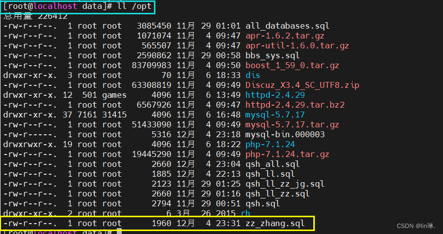 mysqldump -uroot -p123456 --databases qsh > /opt/qsh.sql 备份库后