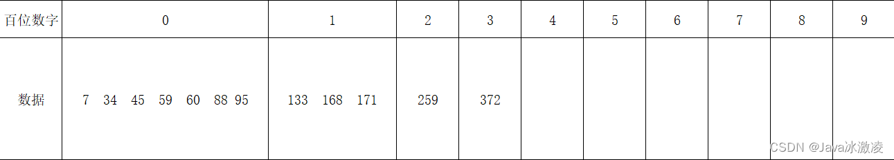 public class Main3 {public static void main(String[] args) {Solution3 solution=new Solution3();int[] elem=new int[]{59,95,7,34,60,168,171,259,372,45,88,133};System.out.println("排序前");System.out.println(Arrays.toString(elem));solution.radixSort(elem);System.out.println("排序后");System.out.println(Arrays.toString(elem));}}