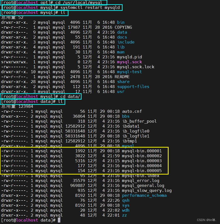 #二进制日志开启后,重启mysql 会在目录中查看到二进制日志