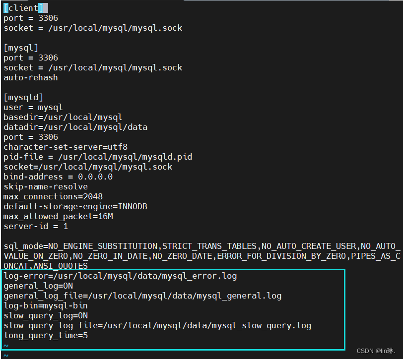 log-error=/usr/local/mysql/data/mysql_error.log #错误日志
