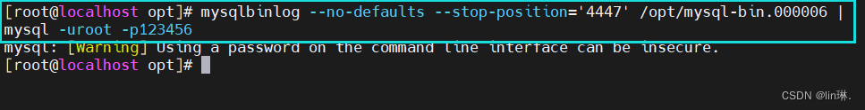 mysqlbinlog --no-defaults --base64-output=decode-rows -v /opt/mysql-bin.000002 > /opt/mysql-bin.000002