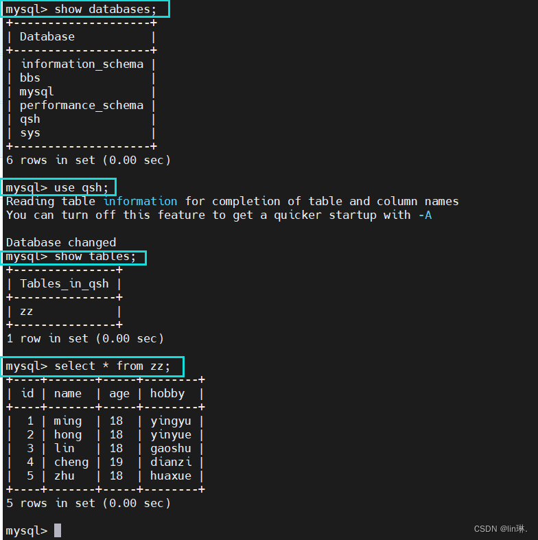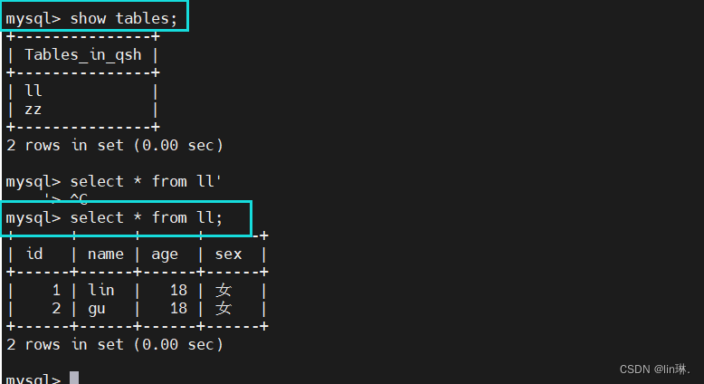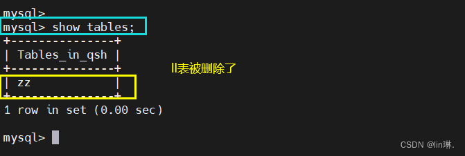 ② 当备份时不加 --databases,表示针对qsh库下的所有表