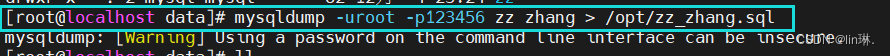 mysqldump -uroot -p123456 qsh > /opt/qsh_all.sql