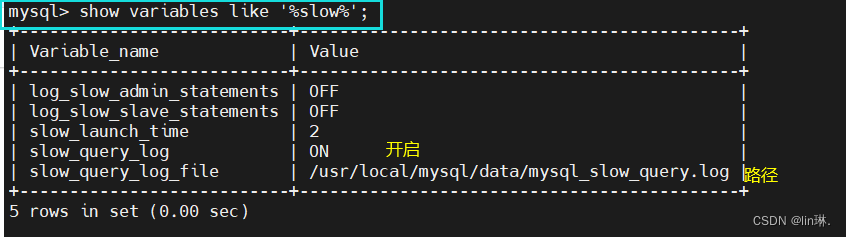 show variables like '%slow%'; #查看慢查询日功能是否开启