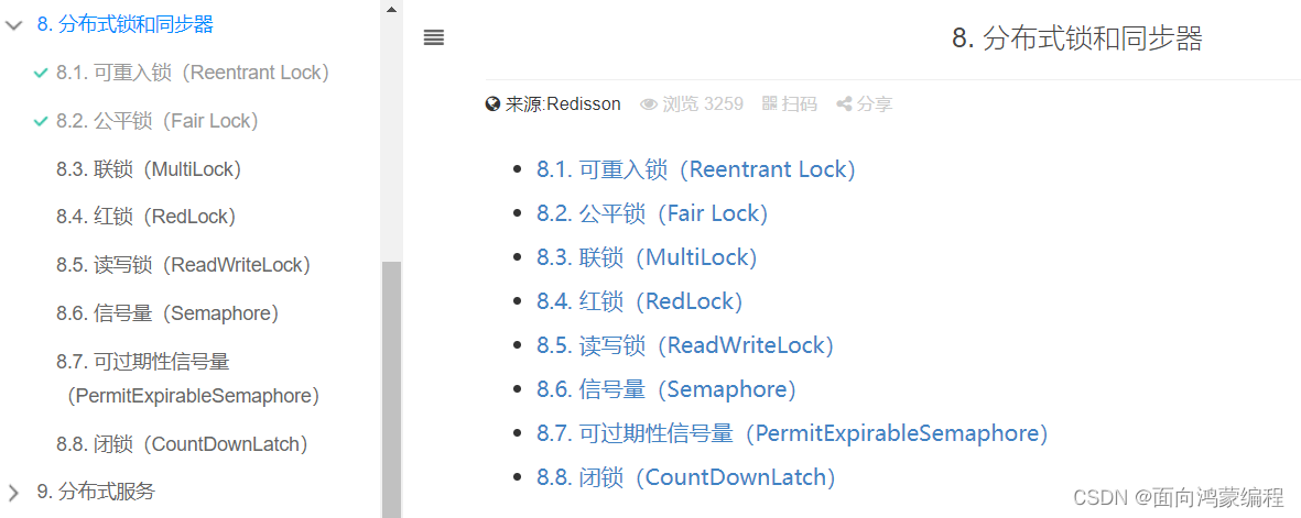 https://www.bookstack.cn/read/redisson-wiki-zh/Redisson%E9%A1%B9%E7%9B%AE%E4%BB%8B%E7%BB%8D.md里面提到了Redisson可以实现大致如下的分布式锁