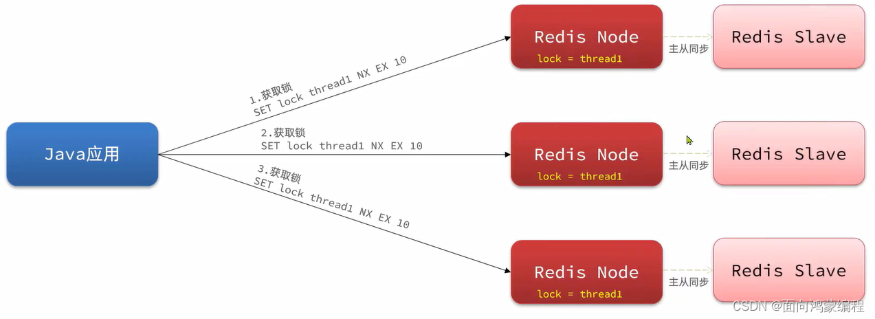 此时,我们获取锁的方式就变了,获取锁的时候,我们需要依次向全部节点获取锁,只有都获取成功时才算成功!!!