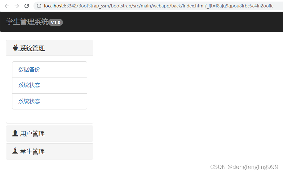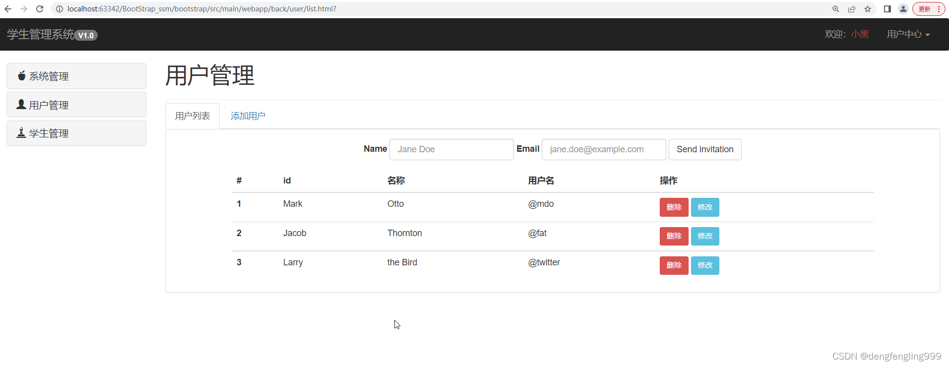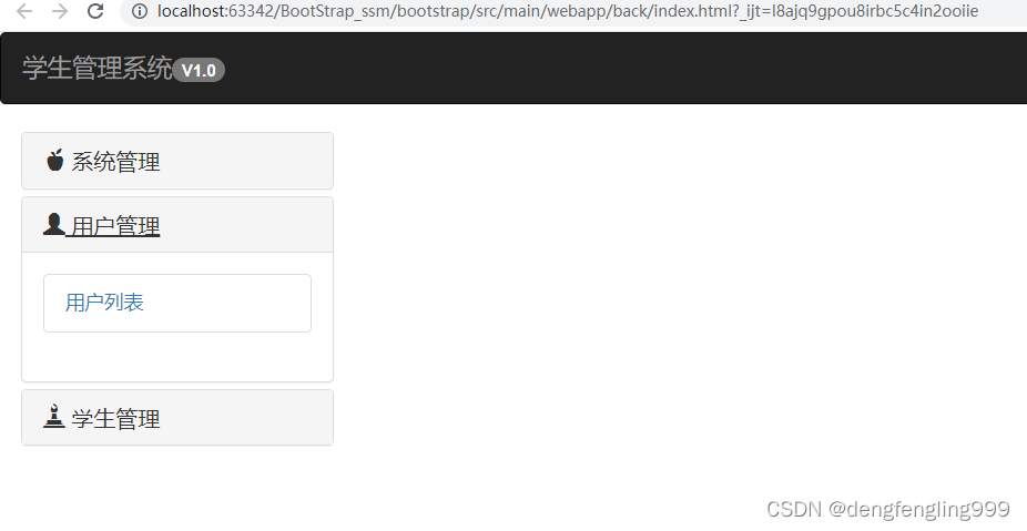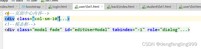 用户管理页面跟主页面,导航栏,菜单栏都相同,不同的是页面中心内容部分,所以复制index主页面代码,修改页面中心内容部分的代码: